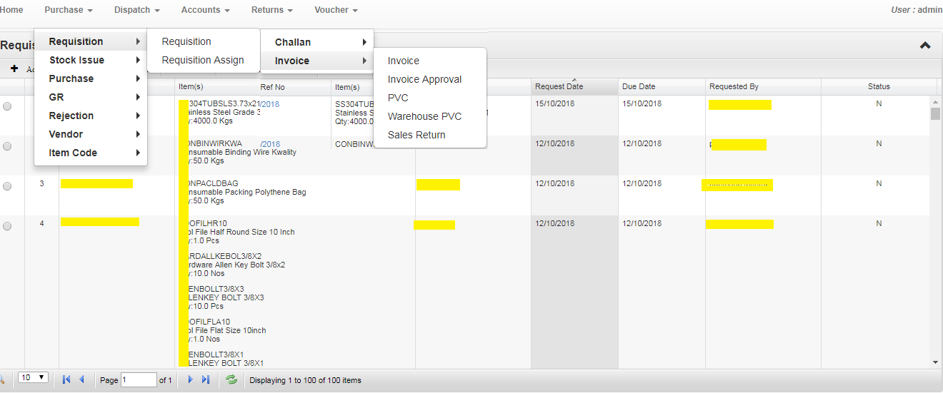Complete Purchase Order Managment, Requistions, Inventory, Vendor Shortlisting, Goods Receipt, Invoices, Vouchers,